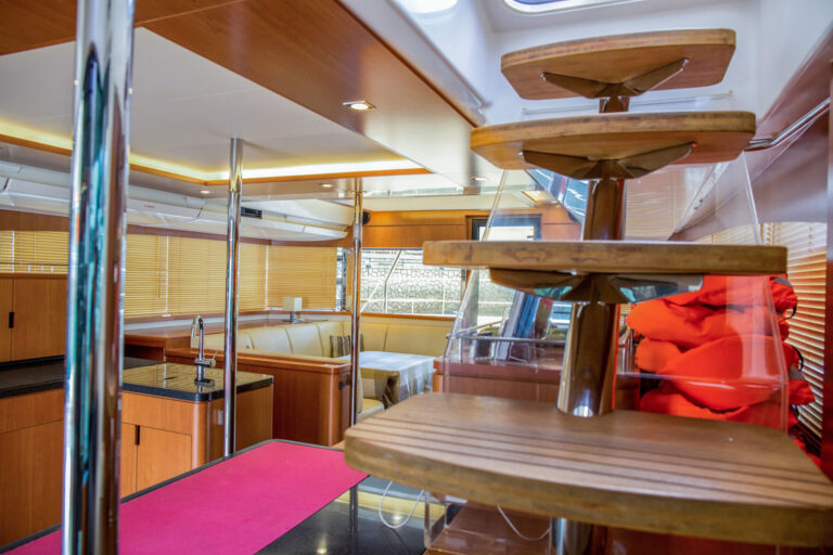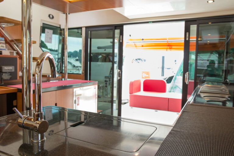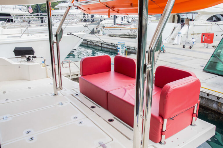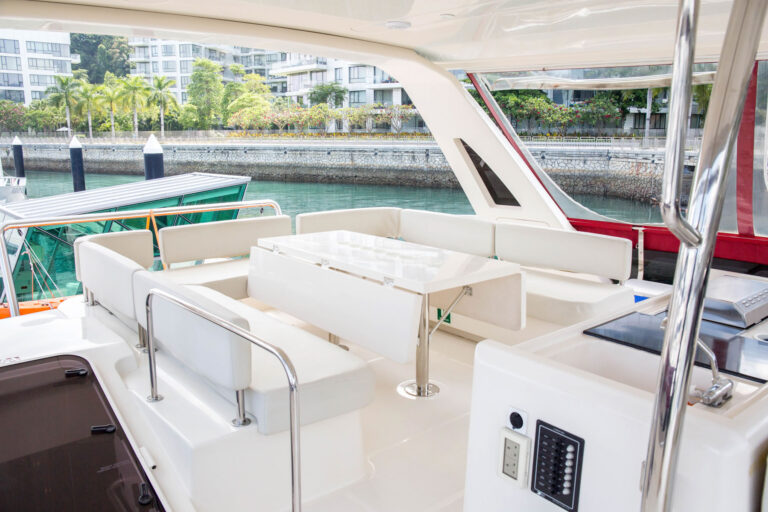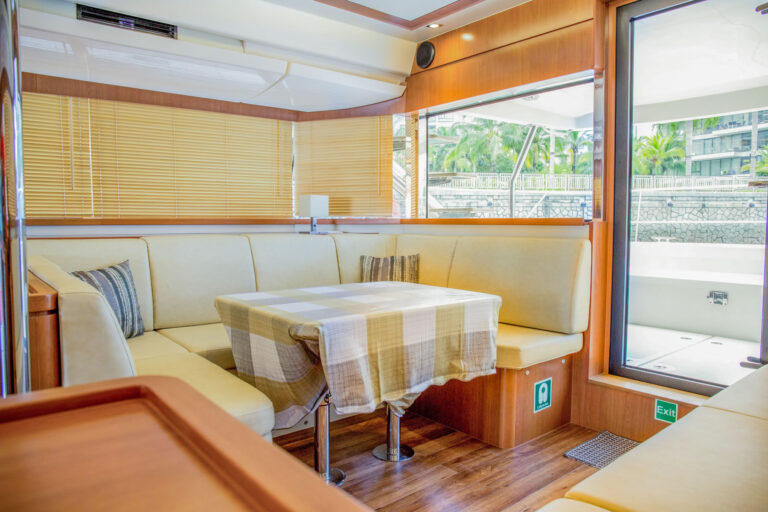 Amethyst has a big table, U-shaped seating, BBQ and mini bar fridge on the upper deck. Our guests can suntan at the upper deck on the sunbeds. If you are looking for a yacht with a wide and broad spacious upper deck for entertainments, Amethyst is the perfect choice! This yacht has sheltered balcony at the front as well as a big outdoor seating at the back of the yacht.