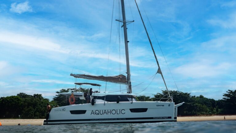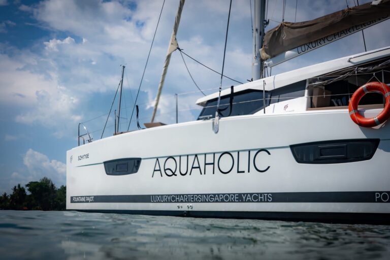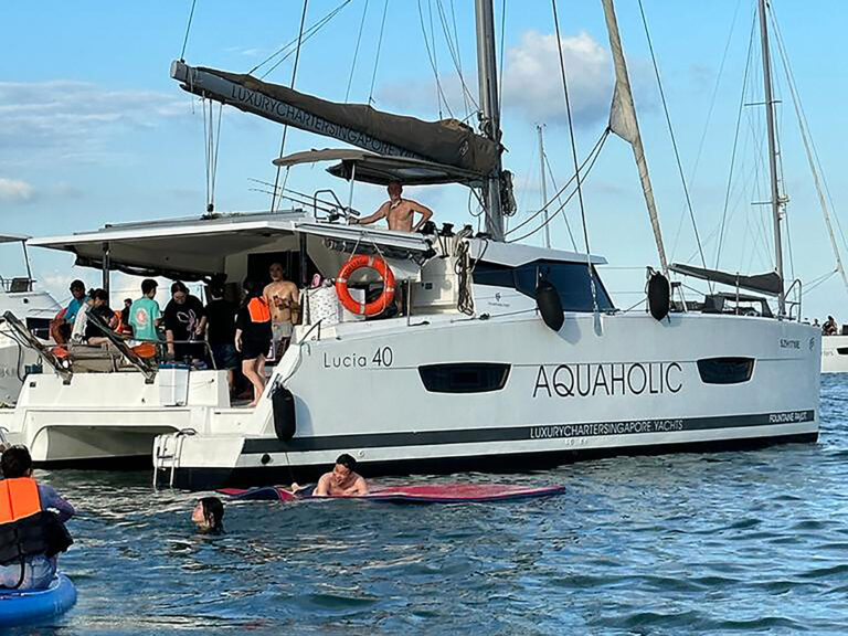 Aquaholic constructed by renowned yacht builder Fontaine Pajot, is a feat of nautical engineering. This 40ft luxury catamaran is purpose built to host private functions, corporate events, and special occasions
