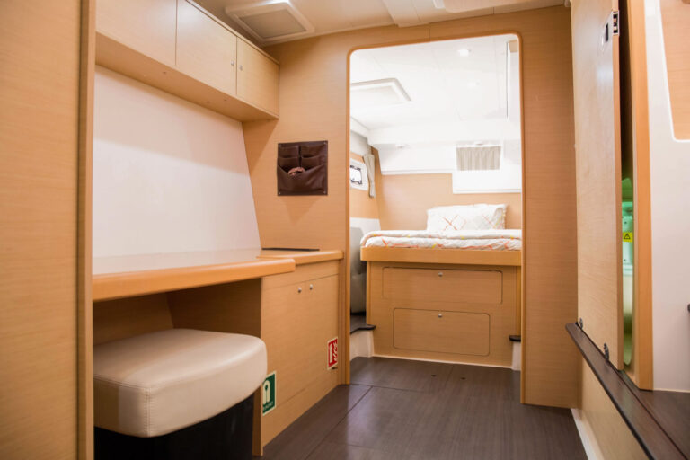 Argon, a Lagoon 400 sailing catamaran will take you on a magnificent journey of yachting. She has large indoor seating, which is suitable for accommodating a large group of people. With ample walkway space along the sides of the yacht, you will be able to stroll leisurely on the deck. Following which, you can adore at the sea whilst relaxing at the back that has additional outdoor seating. The yacht provides plenty of natural lights in the large cabins. On Argon, an extravagant experience of modern yachting will be complemented with specially designed modern interiors. You will get to enjoy cruising in the highest standard of comfort.