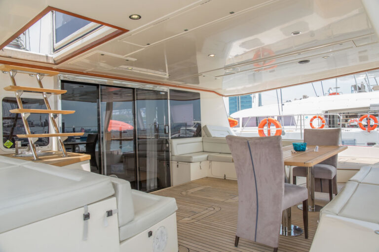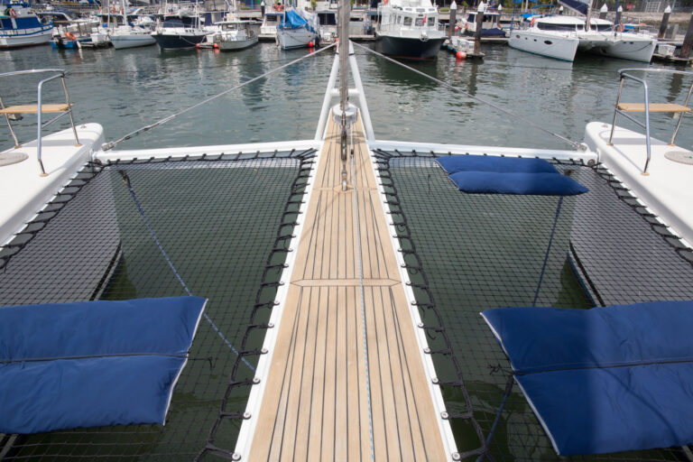 Sunreef62 is one of the largest and most luxurious sailing catamarans available for hire in Singapore. She has extremely spacious deck space and luxurious interior. This yacht is suitable for corporate get togethers, weddings and family gathering. There are trampoline nettings at the front of the yacht where our guests can lay on. This yacht offers an exceptional living space, on the upper and lower decks too.